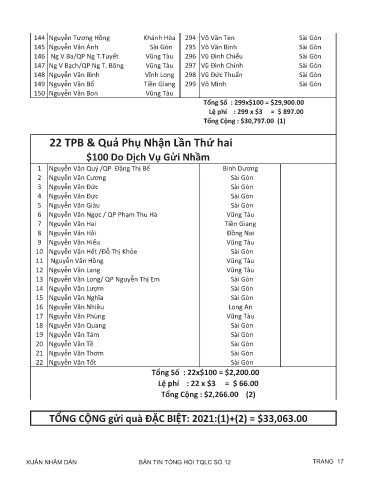 TỔNG CỘNG gửi quà ĐẶC BIỆT: 2021:(1)+(2) = $33,063.00