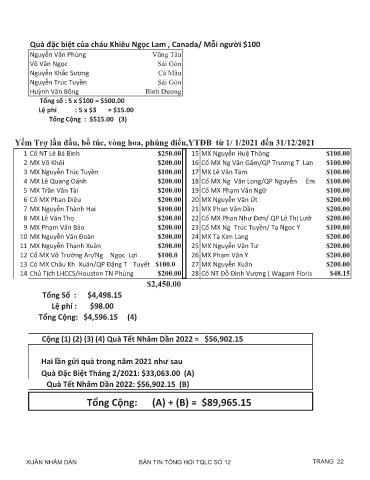 Cộng (1) (2) (3) (4) Quà Tết Nhâm Dần 2022 = $56,902.15