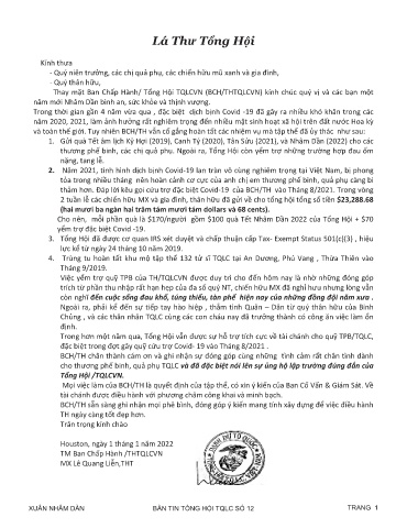 Thay mặt Ban Chấp Hành/ Tổng Hội TQLCVN (BCH/THTQLCVN) kính chúc quý vị và các bạn một