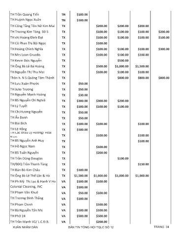 TH Ông Bà Lê Thế Lân & Hà TX $1,500.00 $1,000.00 $1,000.00 $1,000.00