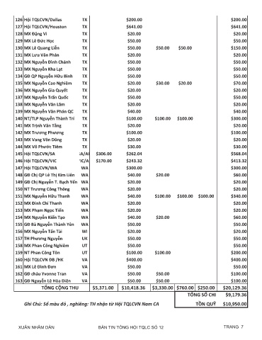 Ghi Chú: Số màu đỏ , nghiêng: TH nhận từ Hội TQLCVN Nam CA TỒN QUỸ $10,950.00