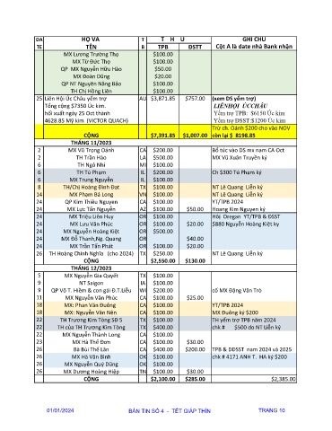 22 TH Trương Kim Tòng SĐ 5 TX $100.00 TH yểm trợ TPB năm 2024