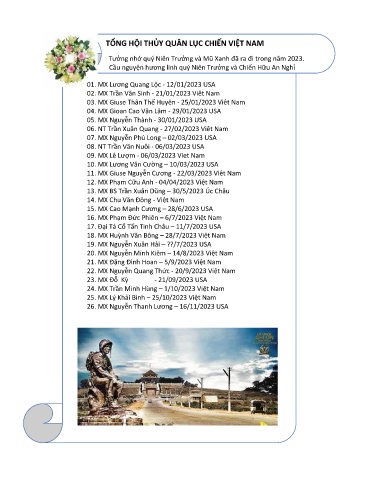 Tưởng nhớ quý Niên Trưởng và Mũ Xanh đã ra đi trong năm 2023.