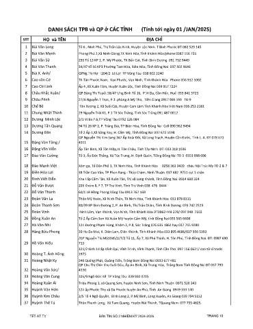 DANH SÁCH TPB và QP ở CÁC TỈNH (Tính tới ngày 01 /JAN/2025)
