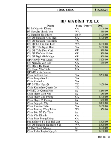 Cháu Yvonne Trần VA $100.00 $100.00 Con gái cố MX Trần Đ. Túc TĐ 2