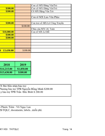 TPB Trần Đức Bình: $200.00/năm Con gái MX Võ Phước Tiêm : Võ Ngọc Lan