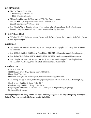 Book Phòng: Xin gọi cô Trâm, code “Th ủy Quân Lục Chiến VN” và có credit card để book phòng.