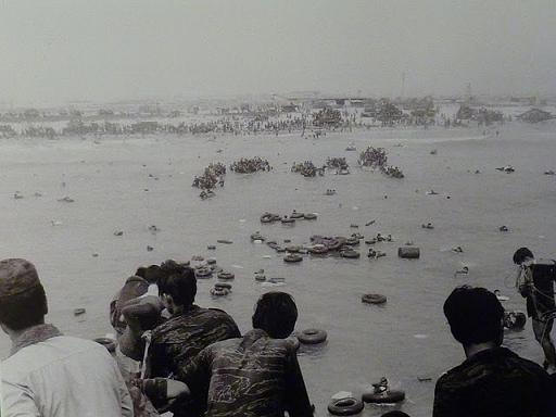 Đạn VC pháo kích trên băi biển bụi mù, những người c̣n trên bờ tán loạn tránh pháo và dĩ nhiên có nhiều người thăng thiên trong giây phút đó, vài trái nổ rơi quanh tàu phụt nước lên cao. Hải Quân trên hai tàu liền gài số de, kéo theo những người đang ngoi ngóp ra khơi và dĩ nhiên họ ngưng thở sau đó. Ngó đồng hồ tôi biết lúc đó là 9 giờ sáng ngày 29 tháng 3 năm 1975. Tức là lúc Tướng Tư Lệnh Quân Khu rời Đà Nẵng, Đà Nẵng bị bỏ ngỏ, địch quân chưa tới, mới chỉ có pháo kích.