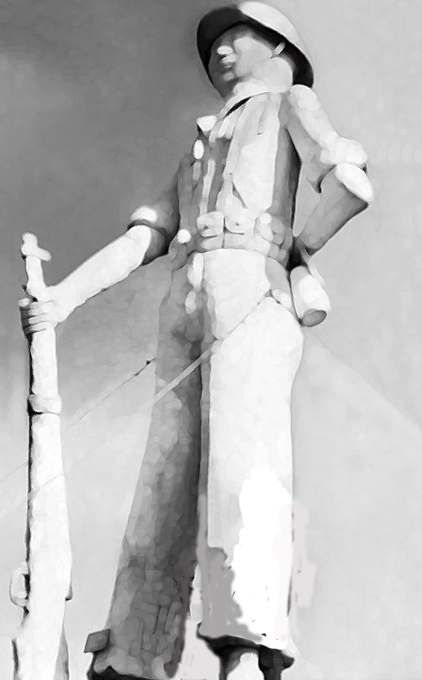 Đêm măn khóa trọng thể với lễ phục uy nghi nơi Vũ Đ́nh Trường, các ngọn đèn pha chiếu sáng thẳng vào tượng. Khóa sinh được lệnh quỳ xuống th́ một tiếng nổ thật lớn, liền sau đó trên núi những trái lựu đạn khói đủ màu xanh tím vàng đỏ, tỏa ra từ dưới chân, tượng người lính lung linh mờ ảo trông thật uy nghi.