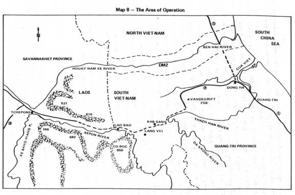 Khe Sanh là một cái tên khá quen thuộc, một vùng đất mầu mỡ nhiều đồn điền càfé thời Pháp thuộc nay đă biến thành một cứ điểm chiến lược vô cùng quan trọng trong cuộc chiến tranh nầy, nơi nổi danh với nhiều trận đánh lẫy lừng đẫm máu nhất giữa quân CSBV và lực lượng đồng minh Hoa Kỳ vào cuối năm 1967 và những tháng đầu năm 1968. Lực lượng địch đă vây hăm Khe Sanh trong ṿng 77 ngày với ư đồ biến nơi đây thành mồ chôn quân Mỹ của một Điện Biên Phủ thứ 2, nhưng rồi đă bị thảm bại tan tác dưới các cơn mưa bom đạn của một quân lực hùng mạnh nhất thế giới, trung b́nh mỗi ngày hơn 45 phi vụ B52 và 300 phi vụ oanh tạc khác yểm trợ chiến thuật. Số bom đạn được ném xuống ở đây c̣n nhiều hơn tổng số mà quân đồng minh đă xử dụng trong trận đại chiến thế giới lần 2 khi đánh bại Đức Quốc Xă.