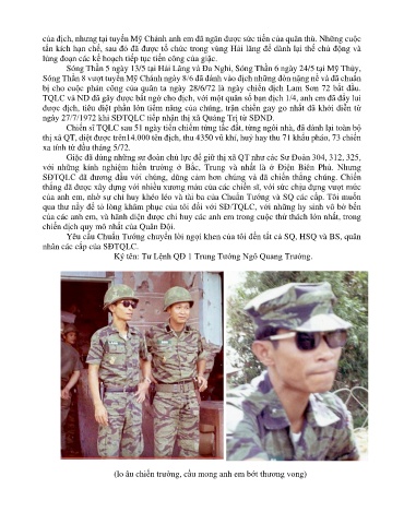 của anh em, nhờ sự chỉ huy khéo léo và tài ba của Chuẩn Tướng và SQ các cấp. Tôi muốn
