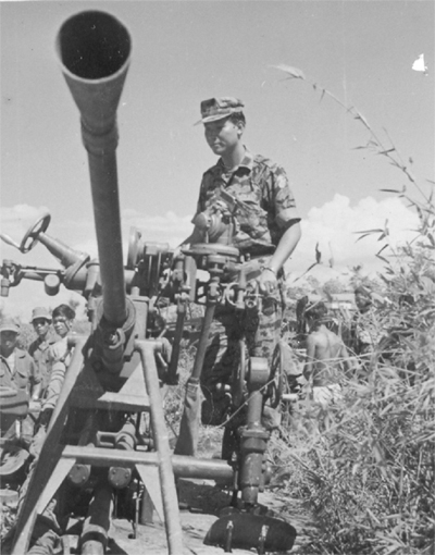 Đại Tá Ngô Văn Định LĐT/LĐ258 TQLC với pháo BS-3-100mm và súng