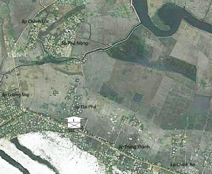 Qua khỏi ngă ba có những chùm cây làm cản tầm quan sát của tiền sát viên địch, hoặc cũng có thể quá sát cận vị trí của người tiền sát viên đó. Đại Đội 2 bung rộng tiến bám theo các lùm cây với bờ đất, đội h́nh sẵn sàng chiến đấu v́ có thể địch đă bố trí. Thiếu Úy Lê văn Môn cho biết Trung Đội 22 đă gặp gia đ́nh Sơn Dương (đại đội 4). Đại Đội 2 dừng quân bố trí, dàn đội h́nh, Trung Đội 22 dẫn đầu từng bước tiến vào bờ cây về hướng Bắc mà trên bản đồ là ấp Đại Phú.
