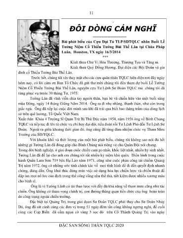Niệm Cố Thiếu Tướng Bùi Thế Lân, nguyên cựu Tư Lệnh Sư Đoàn TQLC mà chúng tôi đã