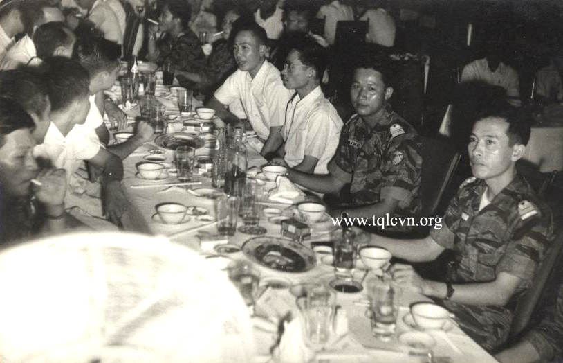 Tiểu đoàn 2 Thủy quân lục chiến chúng tôi trở về Sàig̣n cuối tháng 3 năm 1966. Thiếu tá Lê hằng Minh Tiểu đoàn trưởng tổ chức liên hoan, tiệc mừng chiến thắng để khao quân cho đơn vị tại hậu cứ Thủ Đức. Sau khi Sư đoàn 1 Không kỵ Hoa Kỳ rời vùng hoạt động, cộng sản có ư định tấn công chiếm cứ tỉnh B́nh Định. Nhưng chúng đă bị các đơn vị thuộc Chiến đoàn A Thủy quân lục chiến, trong đó có tiểu đoàn 2 TQLC đă đập tan cuồng vọng của địch quân tại khu vực Bồng Sơn. Để tưởng thưởng công trạng, Tư lệnh Quân đoàn II, ngoài việc ân thưởng huy chương chiến công, đă trao tặng một số tiền thưởng cho các đơn vị TQLC để khao quân. Trung tá Nguyễn thành Yên mà anh em TQLC thường gọi là Ông già Đầu Bạc, Chiến đoàn trưởng Chiến đoàn A TQLC đă chia đều số tiền cho các đơn vị tham dự hành quân với chiến đoàn. Khác biệt với một vài đơn vị thuộc các binh chủng khác, khi được cấp trên trao tiền thưởng để khao quân, th́ cấp chỉ huy chia tiền không minh bạch, khiến tinh thân chiến đấu của binh sĩ sút giảm, v́ họ nghĩ rằng ḿnh là những người trực tiếp chiến đấu và hy sinh tính mạng ngoài chiến trường. Các cấp chỉ huy Cọp Biển chia tiền công khai và dùng vào lợi ích cho đơn vị. Thiếu tá John Hopkins ( Big John) cố vấn trưởng Tiểu đoàn 2 TQLC và tôi (Đại úy Thomas E. Campbell) cố vấn phó vào văn pḥng trao tặng hai chai rượu “Chivas Regal”, hai cây thuốc “Salem” cho Thiếu tá Lê hằng Minh tiểu đoàn trưởng, như một cám ơn về những đối xử lịch sự và tiếp đăi chúng tôi trong lúc hành quân. Quân đội Việt Nam Cộng Ḥa c̣n giử một ít truyền thống cũ của quân đội Pháp, họ thường mang huy chương khi mặc chiến phục rằn ri. Trên ngực của thiếu tá Minh đỏ chói và lấp lánh ba hàng huy chương, Thượng sĩ Chơn cũng vậy. Chúng tôi cùng đi đến hội trường để dự tiệc khao quân. Dáng đi của Minh theo kiểu đi diễn hành của quân đội Pháp, đầu ngẩn lên, chân rảo bước, ngang qua sân tập cơ bản thao diển của tiểu đoàn, hướng về hội trường rộng lớn, lợp bằng những tấm “tôle”, được các cây dừa có tàn lá rậm rạp che mát, nằm về hướng Đông của doanh trại. Có tiếng hô lớn - Vào hàng…Phắc! Khoảng 500 quân nhân đầu để trần, đứng trong tư thế nghiêm dọc theo hai bên các dăy bàn dài, chứa đầy những chai bia và nước ngọt. Không khí yên lặng khi Thiếu tá Minh bước vào hội trường ung dung tiến đến bàn phía trước, nơi đang có quí vị như Đại úy Tiểu đoàn phó, Sĩ quan hành quân huấn luyện, năm Đại đội trưởng, hai Cố vấn là Big John và tôi. Ngừng một chút. thiếu tá Minh nói lớn thật chậm và âm điệu nghiêm trang - Chào tất cả anh em! Những chiến sĩ can đảm và trung thành! Chào tay theo cung cách quân đội Pháp, Thiếu tá Minh ra lệnh - Anh em ngồi xuống! Chúng ta bắt đầu thưởng thức các món ăn và thức uống thoải mái để mừng chiến thắng của đơn vị chúng ta vừa qua! Sĩ quan phụ trách tổ chức buổi tiệc hô lớn - Ngồi… xuống! Mọi người đều ngồi xuống, ngoại trừ những người phục vụ việc rót bia cũng như theo các yêu cầu của anh em. Những đối thoại bắt đầu nổ vang như pháo, vui vẻ, náo nhiệt. Nhân viên hỏa đầu vụ (nhà bếp) và những người phục vụ được thuê cho buổi tiệc đi tới lui, dọc theo những dăy bàn, đem đến những mâm thức ăn đủ loại. Một buổi tiệc thật thịnh soạn và đầy đủ. Đây là lần đầu đầu tiên, tôi thấy toàn thể tiểu đoàn tụ hợp lại với nhau. Các Cọp Biển ngồi đối diện với nhau, một số c̣n rất trẻ, đa số tṛn 19 hoặc 20 tuổi, cũng có một số ít 35 tuổi hay lớn hơn. tất cà đều hớt tóc ngắn và đeo huy chương. Phần đông nhửng quân nhân trẻ không có huy chương, rất nể nang, kính phục các “đàn anh” thâm niên. Bảng tên vải màu tím nằm trên túi áo bên phải Về sau tôi mới t́m hiểu thêm và được biết trong số đông, họ có bà con liên hệ với nhau như cha và con, chú bác và anh em. Như tôi đă từng nói, TQLC Việt Nam họ làm việc theo thực tiễn, không phải để tŕnh diễn phô trương, cũng không v́ ràng buộc theo qui tắc, hoặc những giáo điều mà họ không đặt hết tin tưởng. Ngoài mặt trận, một hạ sĩ quan lớn tuổi, xử dụng một loại súng bắn tự động, v́ lư do anh ta xử dụng thành thạo loại vũ khí này. Anh cũng sẽ thấy một trung sĩ 35 tuổi, mang khẩu trung liên BAR hoặc một khẩu đại liên A.4, hoặc ṇng súng cối 81 ly. Cũng giống như TQLC Hoa Kỳ họ mang vũ khí không phân biệt theo cấp bậc. Thiếu tá Minh đứng dậy, giơ một tay lên để ra hiệu im lặng, cả hội trường không tiếng động, mọi người hướng nh́n vị tiểu đoàn trưởng, ông đang cầm hai chai rượu mà chúng tôi mang đến, tháo bung nút chai và vất ra xa rồi chuyền mỗi chai rượu cho một bên dăy bàn giữa tiếng reo ḥ hoan hô của anh em Trâu Điên. Minh cũng chuyền hai “tút” thuốc Salem mà chúng tôi đă biếu tặng. Khói thu