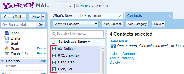 Giả thử bạn có một số địa chỉ trong Yahoo Mail và một số điạ chỉ