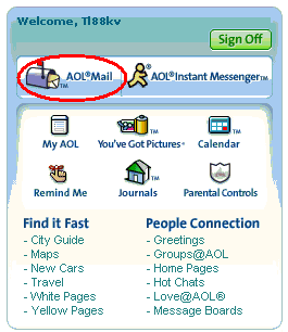 7. Gõ Screen Name và Password của AOL rồi click vào nút Sign On, quý vị sẽ thấy màn ảnh như sau: