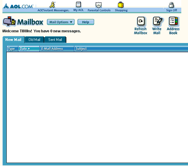 - Click vào AOL Mail icon, sẽ có màn ảnh AOL Mailbox xuất hiện: