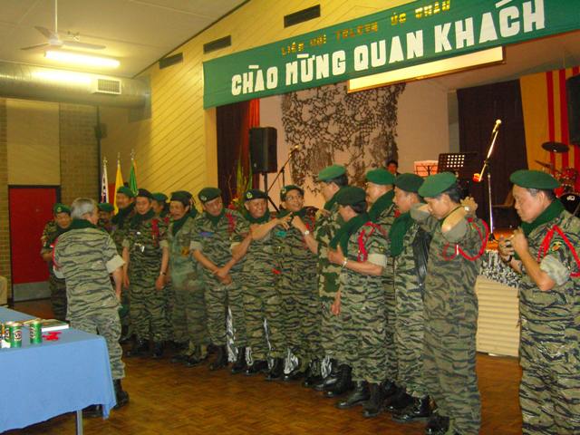 Nghe xong ai cũng cảm động và tiếng vỗ tay ầm vang cả hội trường, chưa hết, mấy Mũ Xanh Sydney ôm theo một túi xách mang ra đưa cho Ó Biển, th́ ra là sau khi hứa qua năm Mẹ qua Melbourne dự đại hội, cả năm Mẹ đă h́ hụi ngồi đan, có bao nhiêu con, th́ mỗi con một chiếc khăn quàng, màu len mẹ chọn trùng với màu nón các con đội trên đầu.. Ôi cao qúy thay, tấm ḷng của Mẹ chạy dài theo từng mũi kim sợi chỉ, Mẹ ngồi bao ngày, bao đêm cho ngần ấy chiếc khăn v́ chúng con của Mẹ có tới gần năm mươi người. Tay Mẹ ǵa. Nạm vàng vào mỗi mũi kim đan. Mẹ đan khăn xanh. Xanh như màu nón. Gửi đến các con Từ một trái tim nồng nàn. Của những tháng ngày mong đợi. Mau đến 1 Tháng 10. Họp nhau mừng và nhớ tháng ngày xưa. Của một đồng, công một nén Mẹ nhỉ, mà công lao của Mẹ th́ biết lấy ǵ đo tính làm sao? Mẹ ơi! Trời Melbourne mùa nào cũng lạnh, không biết Hùng có cố ư không, mà vào giờ phút chót, trời đêm đă chuyển sang Đông, mọi người vừa cảm thấy lạnh, th́ những chiếc khăn của Mẹ mới được Hùng mang ra phát, chúng con choàng chiếc khăn của Mẹ qua cổ, tưởng như được Mẹ ôm vào ḷng sưởi ấm chúng con khi cơn lạnh vừa đến. Ấm áp lắm Mẹ ạ, và ai cũng hănh diện được làm con của Mẹ, khiến anh Huy cũng muốn ganh với những đứa con ở gần, và đùa với Hùng: c̣n khăn không? Cho con ruột một cái với chứ. C̣n đây, th́ cho con dâu một cái luôn, anh em chúng con vui lắm v́ dù ruột hay nuôi cũng đang được Mẹ ôm vào ḷng qua chiếc khăn quàng của Mẹ. Mẹ ơi, đại hội năm nay chúng con có khách qúy, hai vị chỉ huy cao cấp của chúng con ngày xưa, cũng lặn lội đường xa qua thăm chúng con, nhân dịp này chúng con cũng mang qùa của Mẹ ra tặng khách, cả hai vị coi ra cũng rất cảm động khi nhận qùa và cũng vui mừng quàng khăn cuốn cổ, lúc này với những chiếc khăn, chúng con trông càng trẻ trung mặt mày rạng rỡ ra như ngày nào được manh áo mới, có cảm nhận được sự thích thú trong ḷng, mới biết sự chu đáo và tâm lư của Mẹ hiểu được ư thích của chúng con. Qùa Mẹ cho, chúng con đă nhận đủ, nhưng phận làm con, chúng con không biết phải đối xử sao cho xứng với t́nh thuơng yêu của Mẹ, con tạm dùng những ḍng chữ mộc mạc này để cùng dâng lên Mẹ tấm ḷng biết ơn của chúng con, cùng cầu xin cho Mẹ luôn mạnh khỏe, và vẫn c̣n sức sáng tác những vần thơ lạc quan yêu đời Mẹ nhé. Những bài ca của Trang Thủy. Anh Đào, một ca sĩ có hạng ở Melbourne, duyên dáng với chiếc áo xanh kim tuyến sọc ngang vằn như màu áo dân cọp biển, cô ra sân khấu và tự giới thiệu bài: ‘Một ngày TQLC là một đời TQLC’ của Nhạc sĩ Trang Thủy, và quan khách rất bất ngờ và thích thú khi được biết Trang Thủy là vị Tư lịnh phó của Sư đoàn TQLCVN, và vui hơn nữa, ông đang hiện diện trước mặt mọi người. Được nghe giải thích của tác giả về sự ra đời của bản nhạc, cô ca sĩ thả hồn và cả tâm t́nh để thể hiện vào phong cách tŕnh diễn làm cho bài hát sinh động và có hồn hơn, khiến cho thính gỉa ngất ngây thưởng thức, c̣n dân lính nhà ta, lần đầu nghe nhạc sống nói về đời lính của ḿnh, ngồi im dơi mắt lên sân khấu, đợi bản nhạc chấm dứt th́ ̣a vỡ những tiếng vỗ tay như bất tận, và những chiếc nón tung lên cao. Chưa hết, sau vài màn tŕnh diễn những bản nhạc lính khác, Ngọc Trang, một giọng nữ cũng có tiếng của đất Melbourne có thần tượng TQLC là thường vụ Bắc nhà tôi, đêm nay lại ra hát thêm một bài nữa của Trang Thủy. Mỗi bản có một nội dung khác, một cung điệu riêng, nhưng tựu chung những bản nhạc đêm nay đều được hát rất thành công. Riêng tôi không phải nịnh vớt, nhưng có ngạc nhiên về vị chỉ huy cũ của ḿnh, dân tác chiến thứ dữ mà tâm hồn nghệ sĩ cũng mênh mang không kém, chắc do đi nhiều, nh́n thấy nhiều, nên ước mơ nhiều mà hồn nhạc với cái tâm của người nghệ sĩ bám theo chân người chiến sĩ chăng. Phu Nhân đọc thơ và hát. Tôi xuống cuối hội trường đứng nói chuyện, chợt vang lên giọng đọc hào hùng, mạnh và có lửa. Một câu thơ quen đă từng đọc nhiều lần trên báo, trên đài của Du Tử Lê: “Khi tôi chết hăy đưa tôi ra biển.” Ủa mà sao ông thầy không thuộc ḱa? Không, không phải không thuộc mà anh Hai đọc bài đă đổi lời ông nhấn mạnh, tay ông vung lên, một tay trong túi quần và ông đọc với một giọng qủa quyết, không van xin mà như ra lệnh, ông nhắn gửi: “Khi tôi chết, đừng đưa tôi ra biển. Đưa tôi về Bản Hét, Daktô. …. Khi Tôi chết, đừng đưa tôi ra biển. Đưa tôi về B́nh gỉa, Đầm dơi. …. Khi tôi chết, đừng đưa tôi ra biển. VV…. Chưa hết cuối cùng Ó Biển cũng cố mời ông một lần nữa ra sân với bài hát kỷ niệm của ông hơn mười năm trước, mà chỉ có một người, một người hiểu, chứ không phải như thơ Đỗ Trung Quân: “Ai cũng hiểu chỉ một người không hiểu!” Giọng ông cũng trầm ấm khiến Ó Biển nhà này phụ
