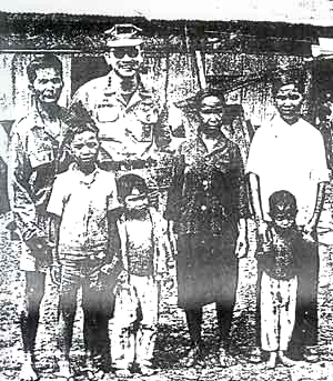 Tháng 10 năm 1972: Đại Tá Tôn Thất Hùng chụp chung với gia đ́nh cụ K'O ân nhân, tại Trung Tâm Tỵ-Nạn Pleiku, gồm có cụ K'O, Bà cụ K'O, goá-    phụ CH'LE (con của ông bà K'O) và 3 con trai của CH'LE