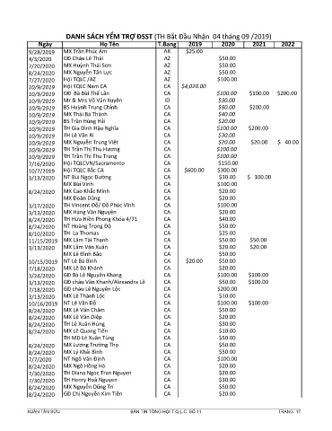 DANH SÁCH YỂM TRỢ ĐSST (TH Bắt Đầu Nhận 04 tháng 09 /2019)