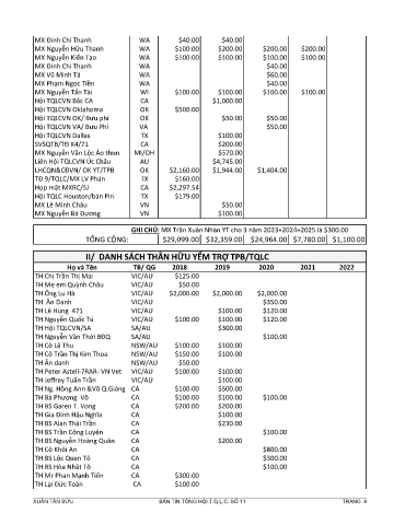 GHI CHÚ: MX Trần Xuân Nhàn YT cho 3 năm 2023+2024+2025 là $300.00