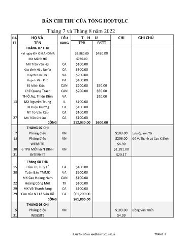 BẢN CHI THU CỦA TỔNG HỘI/TQLC