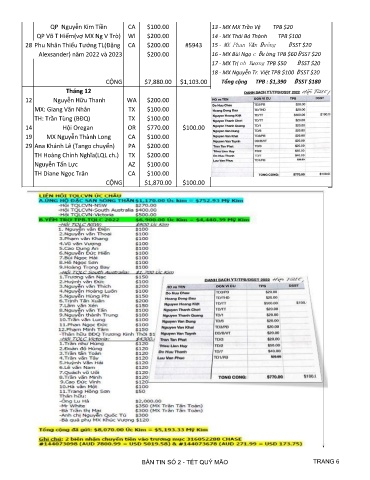 QP Võ T Hiếm(vợ MX Ng V Trò) WI $200.00 14 - MX Thái Bá Thành TPB $100