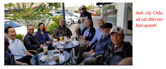 Niên Trưởng Cổ Tấn Tinh Châu luôn sát cánh với anh em trong tât cả các cuộc họp mặt, một ngày trong tuần chị lại lái xe đưa niên trưởng đến nơi các em uống café, dù niên trưởng uống rất ít, gọi là uống góp vui.