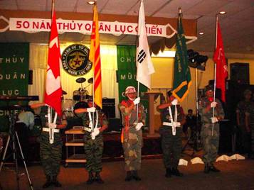 với toán quốc quân kỳ TQLC Việt Nam đứng sát bên nhau trong lúc quốc