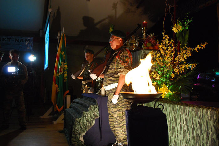 Các cựu quân nhân TQLC đã trang trọng tiến hành nghi thức đốt lửa