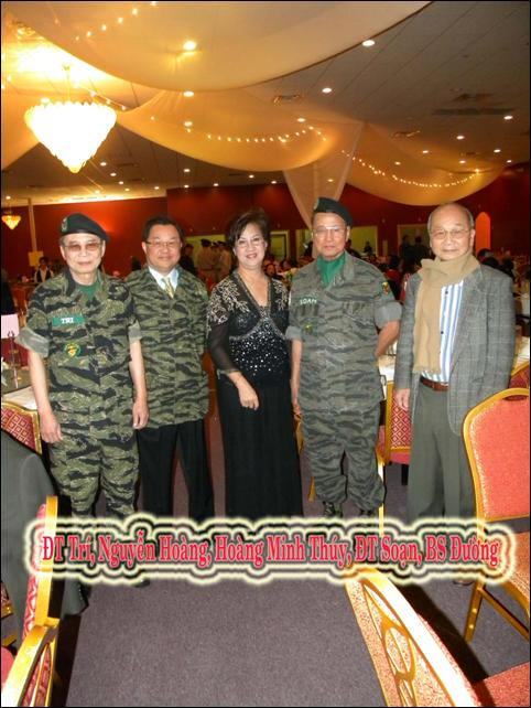 Ở các tiểu bang xa về có: Thiếu Tá Phạm Cang, (Tổng Hội Trưởng), Ðại Tá Tôn Thất Soạn (TQLC - Tiểu Khu Trưởng Tiểu Khu Hậu Nghĩa) v.v. Đây là những anh hùng chiến trận, một thời đổ xương máu trong các trận chiến ghi danh quân sử, nhưng trên quân phục họ mặc hôm nay, không có hàng dọc huy chương gắn xanh đỏ dài dài (như một vài cựu quân nhân Houston – lính ngành - thường mang đầy ngực, trong các sinh hoạt quân đội). Các cấp chỉ huy nổi danh trong nhiều trận đánh để đời của binh chủng TQLC qua lại, chào bàn với nụ cười ấm áp và hiền hoà trong câu chuyện. Chúng tôi ghi nhận có nữ Thiếu Tá Trần Huy Lễ về từ Nam Cali. Bà mặc quân phục trông rất oai phong, là Trưởng Phòng Xã Hội của Sư Ðoàn TQLC, góp nhiều công sức bảo trợ, an ủi các gia đình vợ con, quả phụ của TQLC trong suốt thời gian các chiến binh lao thân ngoài chiến trận và bà đã hết lòng lo lắng cho quả phụ trẻ, khi chồng hy sinh mạng sống nơi chiến trường...