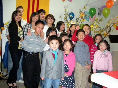 trong buổi Tất niên. Và tất cả các cháu đều được mời lên để chúc Tết
