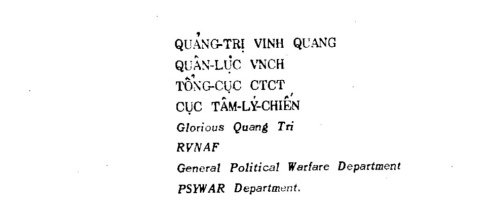, QUANG-TR! VINH QCANG QUAN-Uic VNCH " . TO"G-Cl}C CTCT ,.. r ,.' CVC TAM-LY-CHIEN Glorious Quang Tri RVNAF General Political Warfare Department PSl'W AR Department.